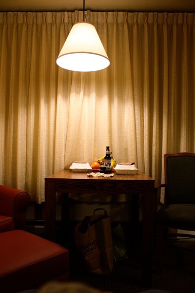 Pretty nice for a motel! Love all the foods you got for the stay. Makes it much more homey 🙂 Hope tomorrow goes great!