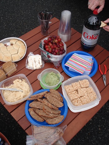 Once on campus, we put on a display of our own for our tailgate: ham biscuits, kashi party crackers, the best homemade hummus ever (Barefoot Contessa’s recipe), the husband’s homemade bread in toasts, broccoli pesto, cheese, grapes, and rice crispy treats. Karen loves to join us for Davidson events and she prepared most of the spread.