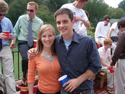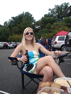 Hi guys!! We are home from our long day of Homecoming activities. It was a great day – and it didn’t rain!!!!!!! I am pretty proud of the way I handled myself health-wise today given that I was surrounded by drunk people most of the day. I didn’t have a drink until dinner, but not because I was trying to be strict, but because I just didn’t need/crave one. I could have easily sipped beer all day, but then I would be feeling drunk and sick right now, so I decided just to not sip beer all day and the end result was much happier.