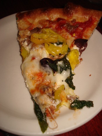 For dinner Karen, the husband and I split the Mediterranean Pizza. The Brickhouse has the most amazing pizzas. Perfect chewy crust, perfect wetness and meltedness of toppings, perfect size. Here’s the one we got: