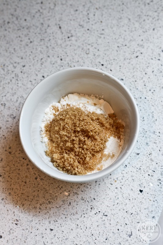 In the meantime I mixed together the remaining ingredients for the dough: salt, brown sugar, corn starch, all-purpose flour, and baking powder.
