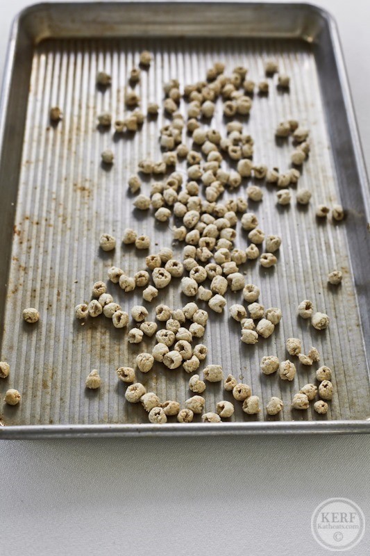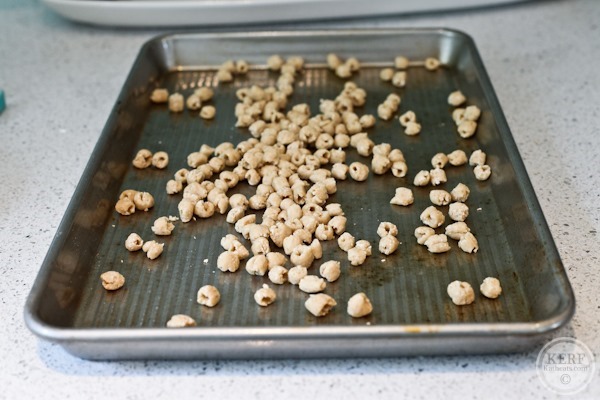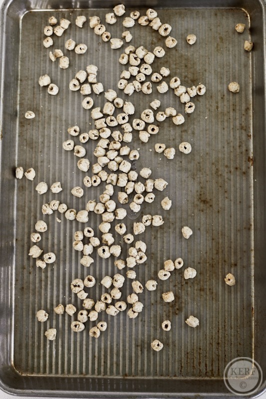 Then it was time for baking in a 300* oven for about 30 minutes, shaking every 5 to ensure even browning.
