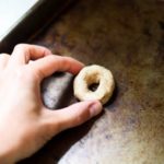 - Use a skewer, make a hole in the center of the dough piece and reshape into a circle.