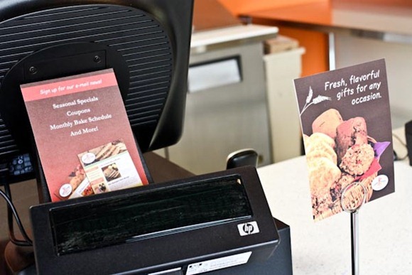 I have been giving the customers our biz cards, which have a free loaf of bread coupon on the back!