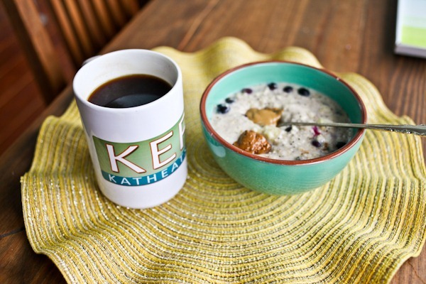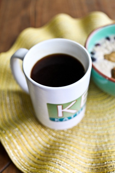 Dreary (relatively) cold morning = hot foods. Oats + coffee! However, it is not January and these definitely raised my body temperature. Proof they do their job well in the winter!