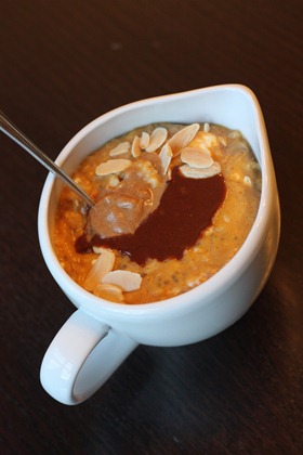 I was more than ready for breakfast today and dove right into my favorite combo. Would you believe I ate that whole jumbo size can of pumpkin in less than a week!?