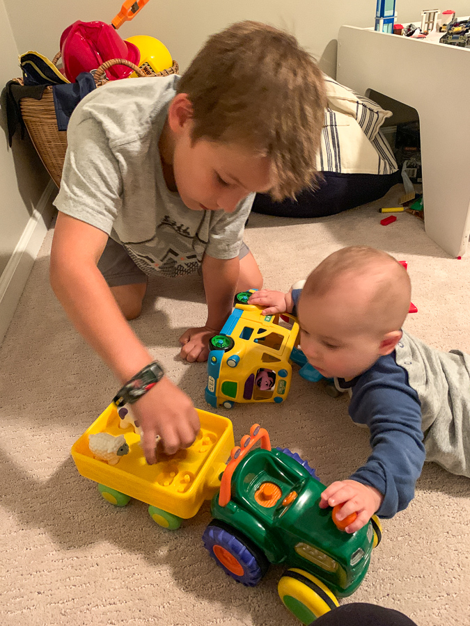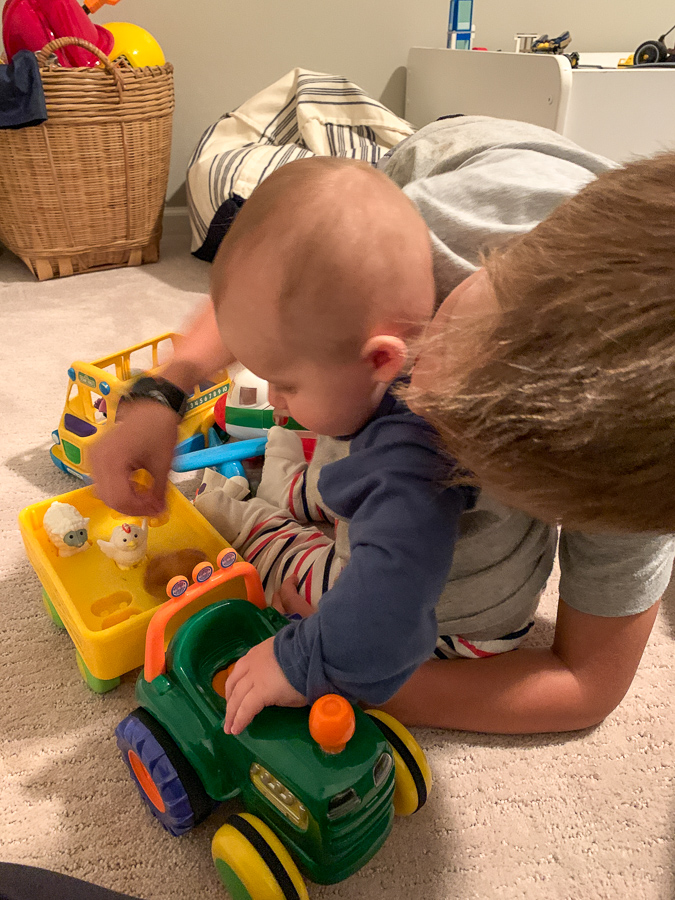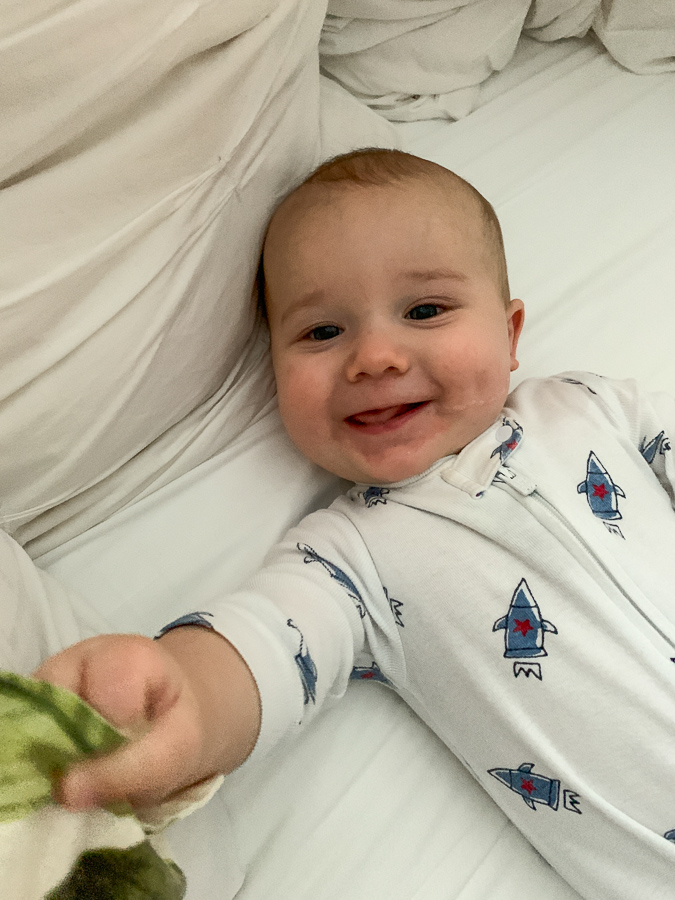 Look at that snuggly boy! The first night was a little rough, but the second night he did great and slept straight through.