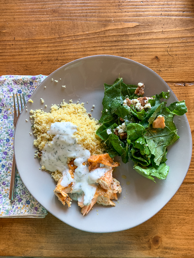 And this Thai crunch salad was our favorite meal of the week. I got it for a lunch, but we ended up having it for dinner with some extra salmon mixed in. The peanut dressing was IN-credible!