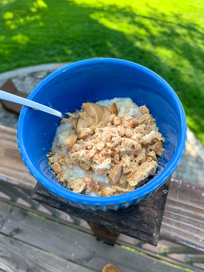 I made some whipped banana oatmeal on the stovetop and had it two days in a row. I’m really into cook-once-eat-twice these days! I do it with smoothies too. And obviously the egg muffins above.