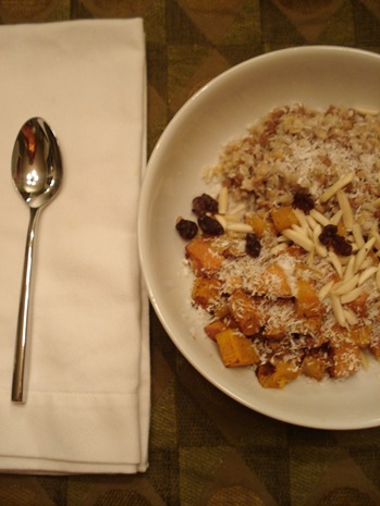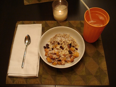 In the oven we roasted (for 30 minutes 450*) a tiny butternut squash and a medium sweet potato in a seasoning of