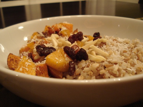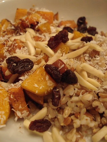Lastly, we topped it all with some raisins, sliced almonds and more coconut.
