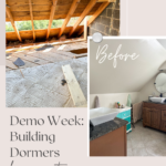 The holes in the roof were created to build the dormer, which is a way to square off the attic walls to normal ceiling height. I’m only 5’2″ so I didn’t hit my head too many times over the past 8 years, but Thomas (at 6′ tall) found the sloped walls much more challenging.