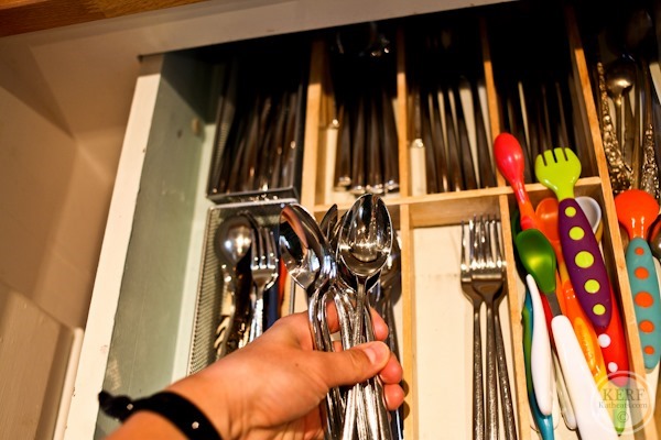 Sort the silverware as it goes in the dishwasher. You have to put it in there anyway, why not put all the forks in one section, spoons in another, etc. THEN…you just pull out all the spoons and drop them in the drawer.
