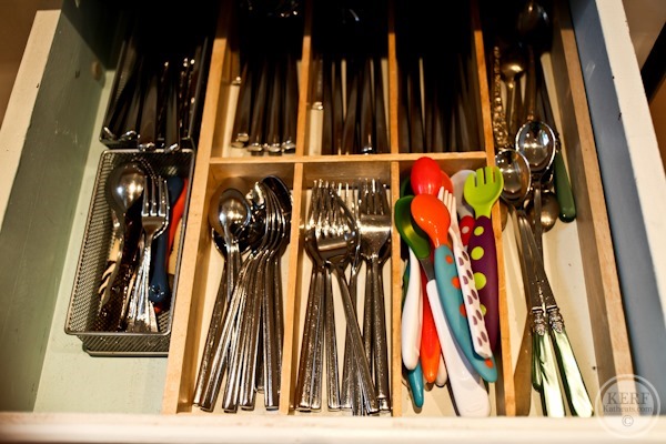 “Our dishwasher has several little compartments for silverware, so each compartment is for a different utensil. You just grab the contents of each compartment and go straight to the drawer…no sorting required!”