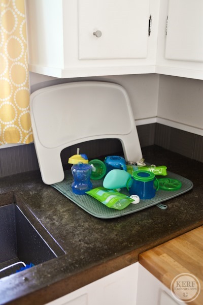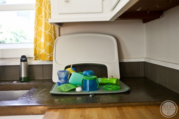 For my 17 month old’s sippy’s and snack cups I have a Munchkin bottle drying rack that stays on the counter. Sometimes the stuff never even gets put away we just let it dry and by that time we need it again anyways! I try and keep it neat looking though because I don’t like clutter and mess!