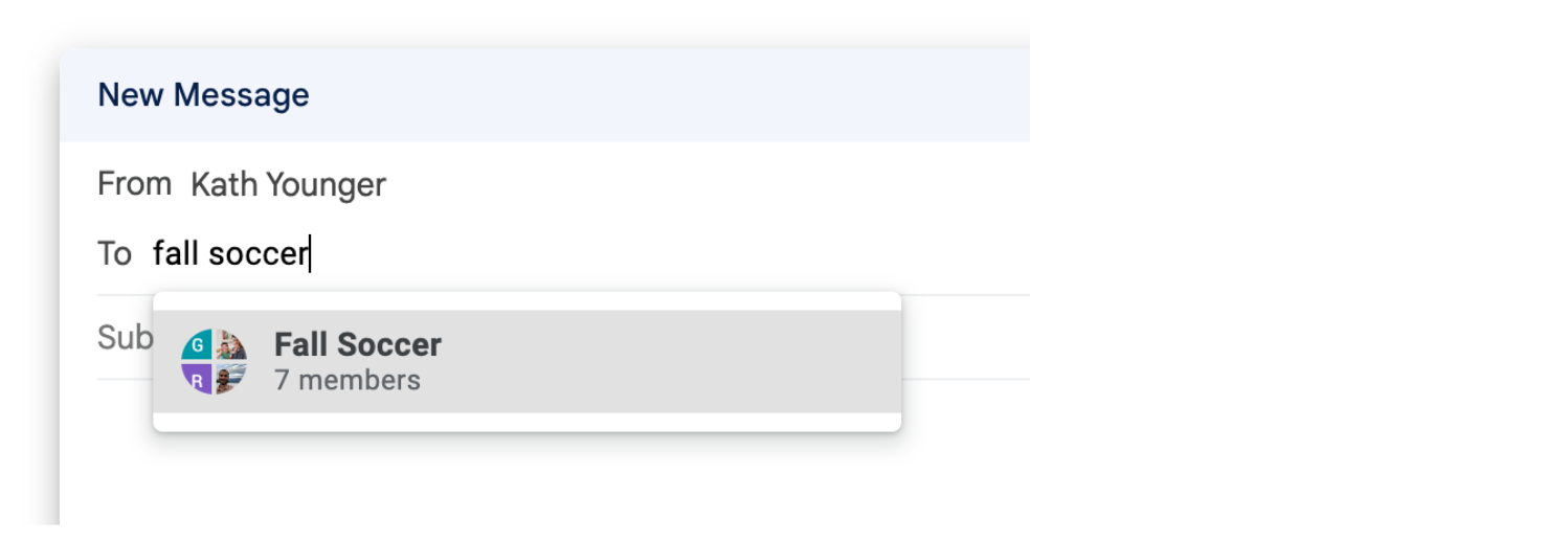 - When you’re ready to email the group, just type in the label name and the group will autofill!