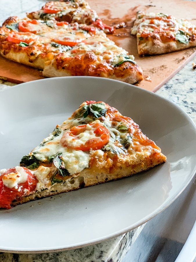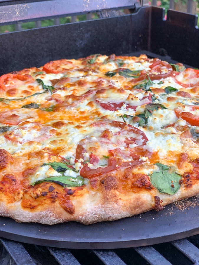 I’ve gotten so many requests for this how-to, and I finally took some photos the last time we had a pizza night! We often make baked pizza in our oven in the colder months, but in the warmer months there is nothing like the char-flavored grill marks of a grilled pizza! We’ve made them both on the Big Green Egg and our gas grill when we have less time.