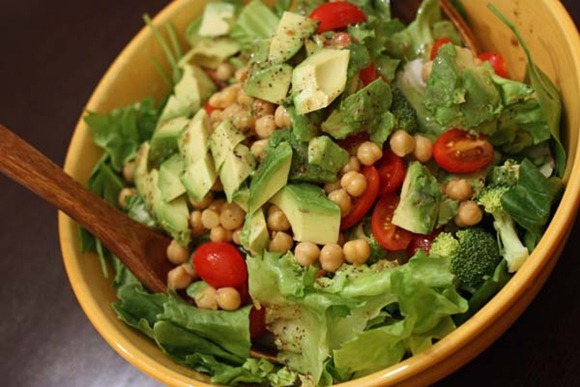 And a big salad with chickpeas, tomatoes, veggies and avocado