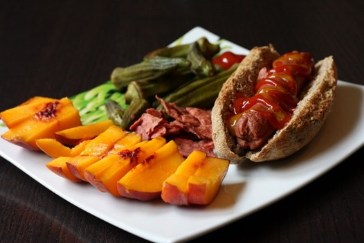 P.S. The row of peaches alongside that hot dog makes me terribly happy somehow.