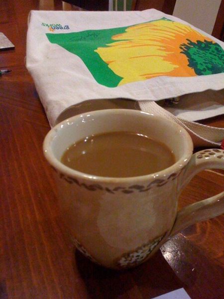 While studying I had a French press cup of Butterscotch Toffee Coffee at Dilworth Coffee! My do I love the aroma of that flavor. [Yay iphone photo!]