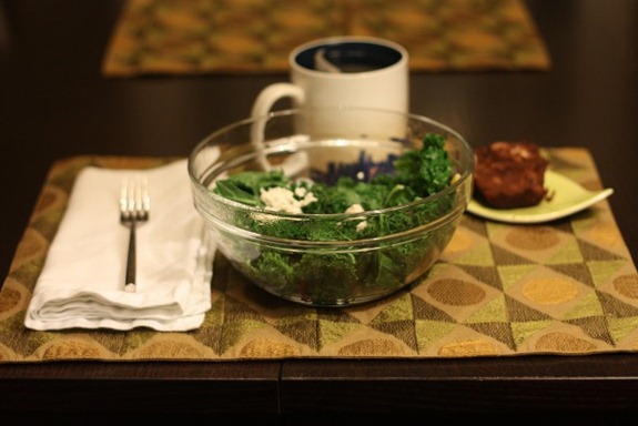 I came home and wanted a salad, but we’re out of lettuce so I made one out of kale