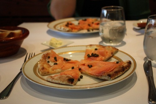 For lunch we split the Smoked Salmon Pizza with Meyer Lemon Creme Fraiche, Thinly Sliced Potatoes and Capers
