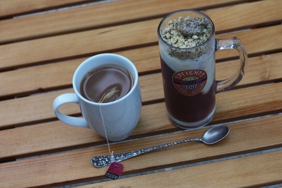 Your breakfasts always look delicious! I love that you and I both eat and drink out of beer pint glasses/mugs all the time. We have a plethora of them at my house- perhaps Matt and Isaac should do a trade sometime. Maybe once you all are in VA. 🙂