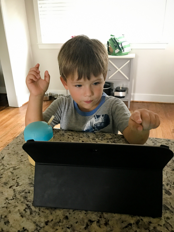Inevitably all that building revs up the appetite, so we pause for a pumpkin smoothie. We try not to spend too much time on tablets, but snack time is when I say it’s totally fine. I catch up on work and Mazen is occupied for a bit with a little entertainment. I have let him watch YouTube in the past, and the related videos they suggest can stray from the G-rated kids shows I feel comfortable with. This is how we learned about Toca TV!