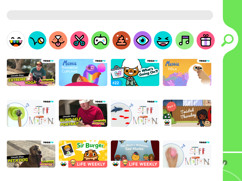 Toca TV has thousands of curated videos in a 100% ad-free, safe, and fun environment. Aimed at kids from 4-9 years old, the app was tested with hundreds of kids to be as user-friendly to that age group as possible. The videos are super cute and range from crafts to animals to real people to animation.