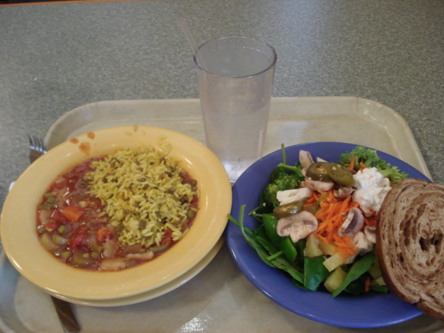 And eat in dining halls!! It was so fun. I think of dining halls as just a huge buffet of vegetables – a salad bar of variety, soups, and cooked ones that I can round out with some grains and dairy (and dessert if need be!). The meats, pasta dishes, and “grill” items (burgers, etc.) are never appealing to me. But it is always fun if there’s a “main dish” that I like, such as salmon.