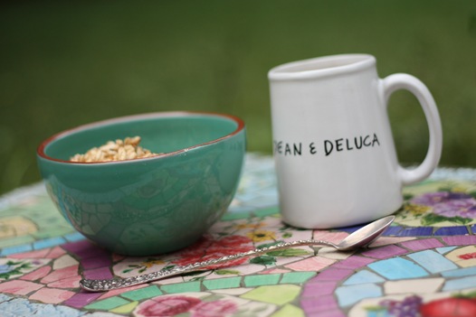 So I set the alarm for 7 this morning and we were up and enjoying breakfast shortly. Since we were both thirsty from our drinks last night, cool yogurt was more appealing than oatmeal, so what to have for breakfast was an easy decision.