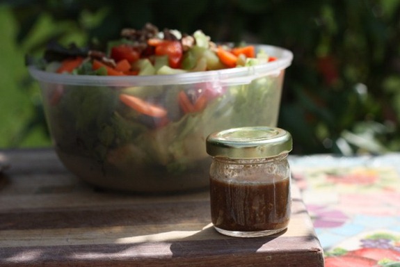 Your salad is so pretty! I love how you pack your dressing in little jars. So clever. 🙂