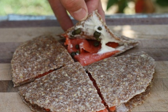 A smoked salmon + Laughing Cow + caper quesadilla –