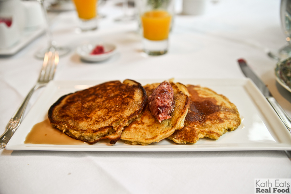 Cornmeal pancakes with cherry butter and hickory syrup –