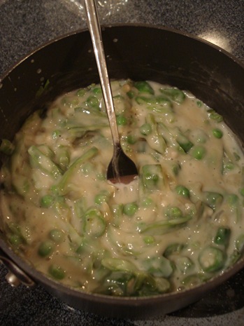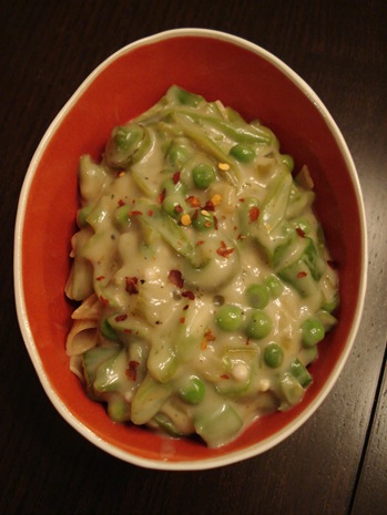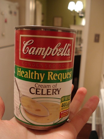 Dinner tonight was cheap, easy and instant. I used up this can of Cream of Celery I’ve had in my pantry for YEARS plus more of the leftover pasta from Sunday night.