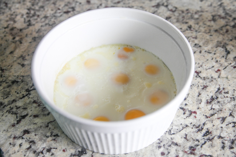 To make the eggs, I use the recipe I wrote about in this post. Go there and link through for the detailed version. If you’re an Instapot pro, then this might be all you need to know: grease/spray an oven-safe dish, crack in 8 eggs, add 1 cup of water and place dish on the rack. Manual pressure cook 5 minutes and allow 5 minutes natural release and you’ll have the following egg “loaf” in your dish. Think of it as one giant hard-boiled egg with 8 yolks!