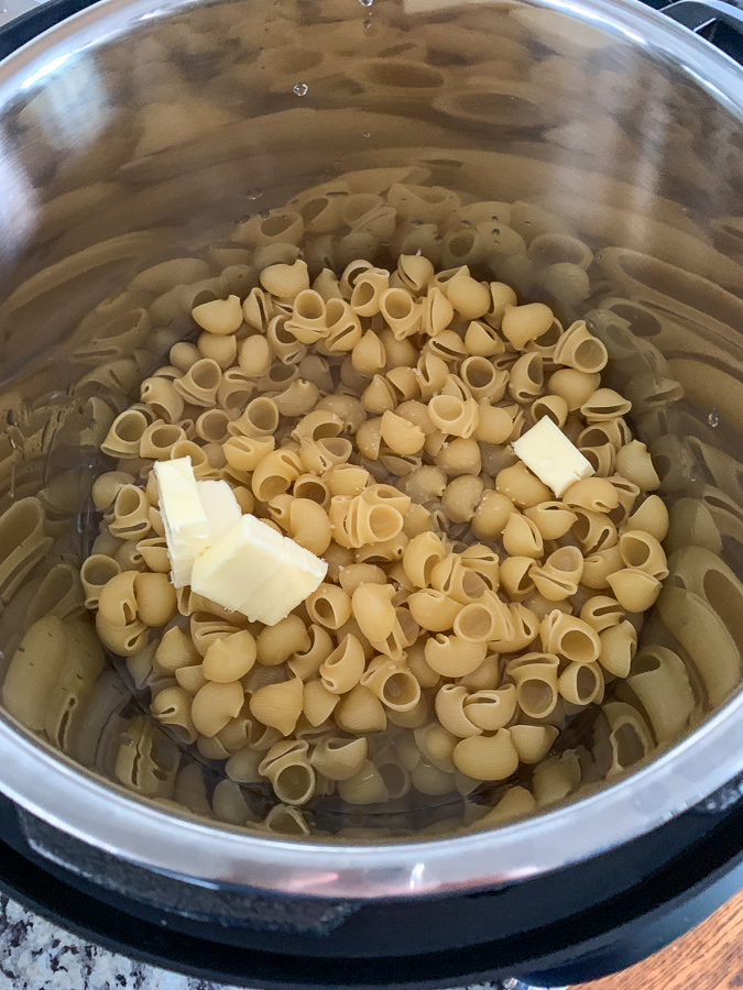 You simply put a pound of pasta plus some butter and 4 cups of water in the IP.