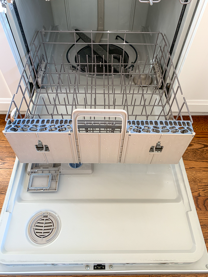 Ha! We have that same dishwasher and I’ve always kept the silverware on the door, but that does make sense to attach it to the rack like that. It can go inside the dishwasher too, but then it just takes up valuable space! Ugh, $400 to fix the heat element though, yikes!