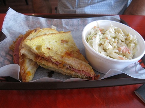 Matt got a fried green tomato + Italian meat panini with blue cheese slaw