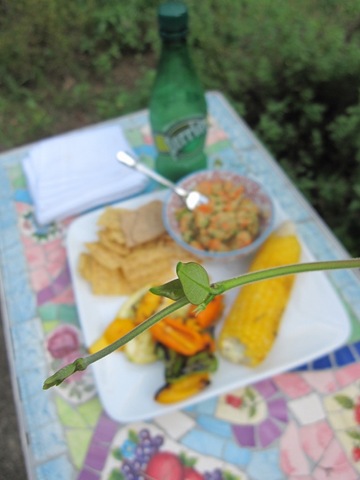 We grilled a bunch of veggies (peppers and one squash) and this corn from Kelseyās parentsā garden. It was the most unique corn ever ā very, very chewy and popcorny in a good way!