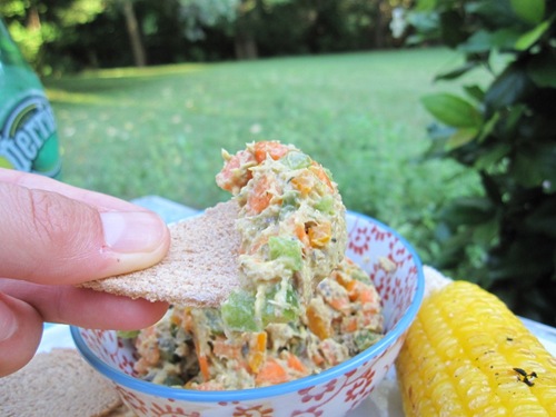 The sardine salad needed some dippers, so we opened a bag of Sun Chips leftover from Saturdayās Zoeās Kitchen lunch, plain Pop Chips and a few Old London Melbas –