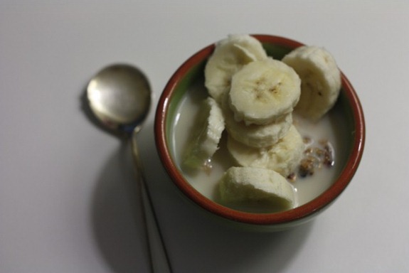 I made a snack of half an Alliebar, some dry oats, milk and half a banana
