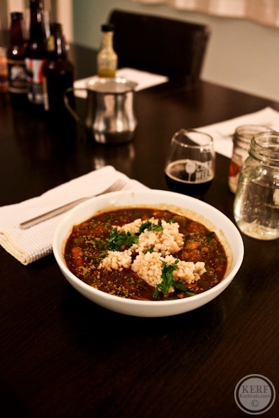 We were pretty hungry after two hours of simmering, and as much as Jeff wanted to keep letting this bad boy bubble away, we decided it was time to eat.