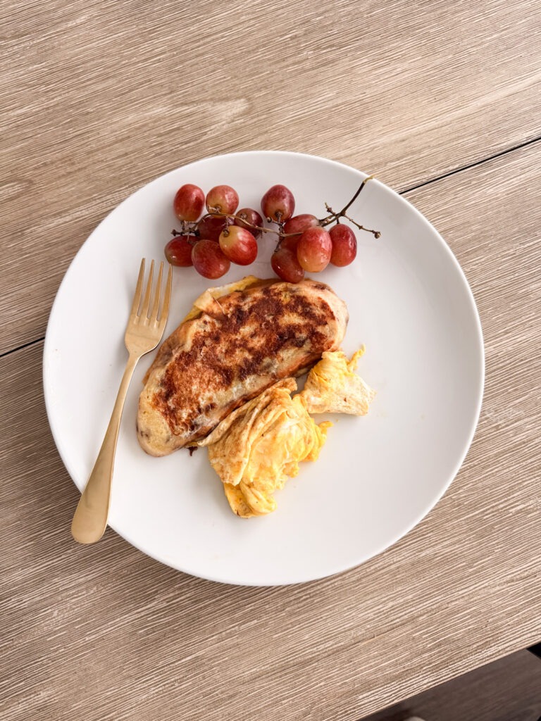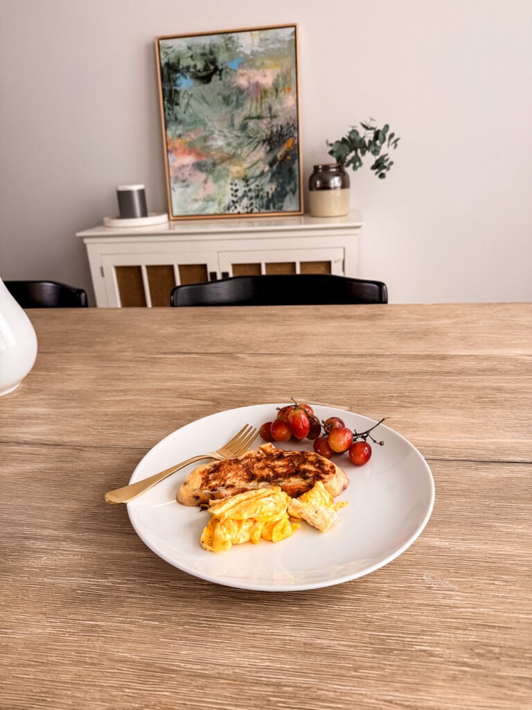 Birch is absolutely obsessed with Great Harvest Cinnamon Chip, so I turned it into French toast. So good!