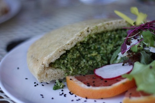 And I had the Gyro’s Journey, a homemade pita stuffed with tabouleh and a side salad.