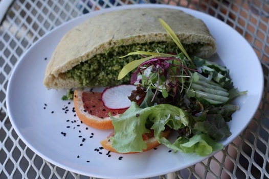 Josh ordered the Dolphin Plate (no idea why it was called that!) and it came with lots of veggies and tabouleh. He wanted to go all raw to see how invigorated he felt 😉
