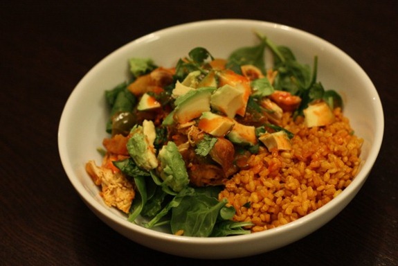 SO SO SO easy. I served a heaping spoonful over baby spinach and leftover turmeric rice and garnished with cilantro, avocado and Cholula!