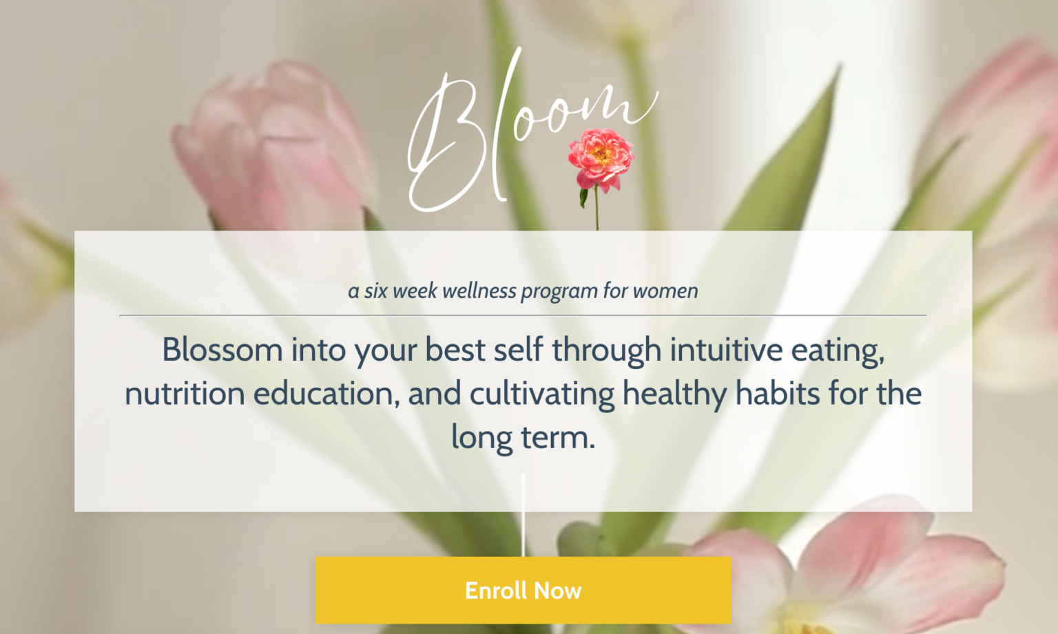If you’re interested in learning more about an intuitive eating approach to wellness, check out my wellness program, Bloom. You’ll get 6 weeks of lessons on mindful eating, preparing balanced meals, nutrition foundations, and finding exercise you love. All for just $67!