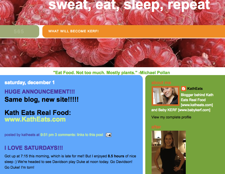 It’s hard for me to believe I’ve been blogging for nearly a decade. That’s 10 years of my life devoted to this space and sharing my life with you guys. So much has changed since my first few posts! I was one of the pioneer healthy living bloggers, and when I started blogging I had no idea what it would become. I’ve been wanting to write down a bit of my history, as so many of you are new and probably didn’t know Kath Eats when I had a blurry photo of raspberries as my header : )