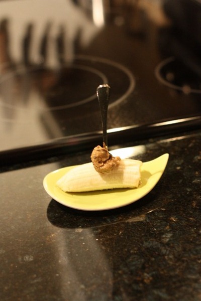 But first I satisfying a slightly grumbling stomach that was yelling for breakfast with a half banana + Nuttzo combo